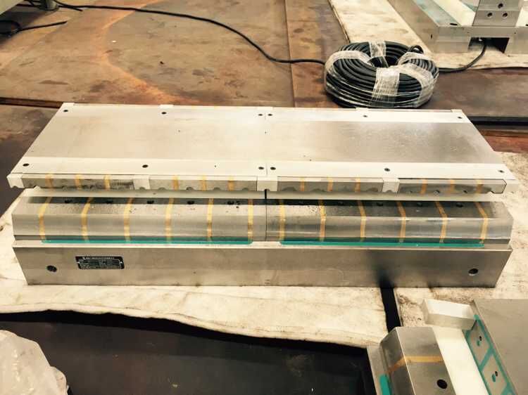 根據(jù)客戶要求,多臺(tái)吸盤(pán)組合對(duì)各種軌道進(jìn)行加工,專(zhuān)業(yè)的控制系統(tǒng)可以通過(guò)操作臺(tái)按鈕對(duì)所有吸盤(pán)進(jìn)行統(tǒng)一充退磁控制或分區(qū)充退磁控制。將鐵軌底面放在吸盤(pán)磁極面上,側(cè)面靠住吸盤(pán)側(cè)面磁極,按充磁按鈕即可固定鐵軌,然后對(duì)鐵軌進(jìn)行加工。