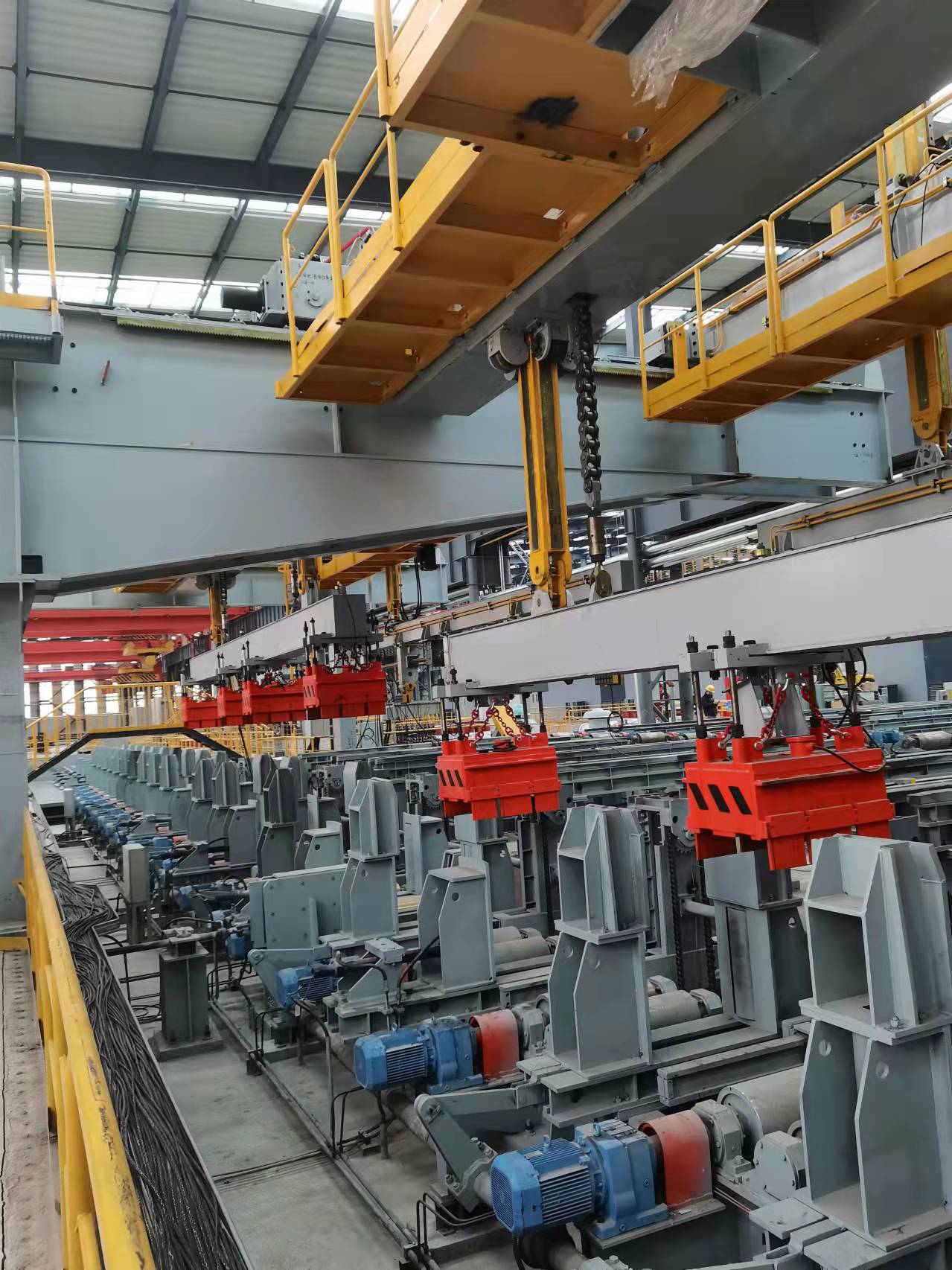 千豪技術(shù)團(tuán)隊(duì)根據(jù)現(xiàn)場(chǎng)工況設(shè)計(jì)的吊型材,鋼軌自動(dòng)化生產(chǎn)線用電永磁鐵吊具,采用5臺(tái)電永磁鐵聯(lián)吊,最長(zhǎng)可吊運(yùn)12米長(zhǎng)型材