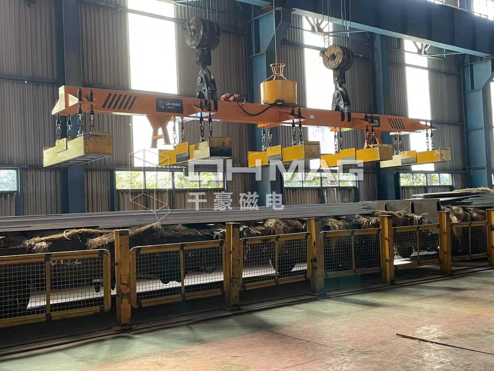(吊多張鋼板用電永磁吊具)針對(duì)一次需要吊運(yùn)多張鋼板所研發(fā)的一款電永磁吊具,適合鋼鐵廠,船舶制造,以及